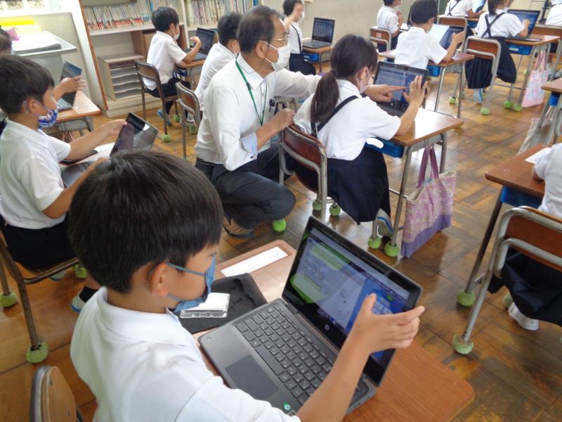 1学期に何度か練習をしてから夏休みを迎えたこともあってか、どの学年の子供たちも、トラブルなくスムーズにオンライン朝の会に参加し、双方向の受け答えをすることもできました。ひと安心です。
