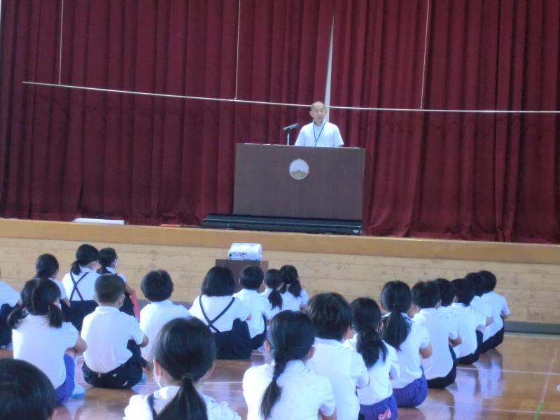 校長先生からは2学期がんばってほしい4つのこと=①命を大切に、②3つの合い言葉、③あいさつ、④友達の話を聴く、