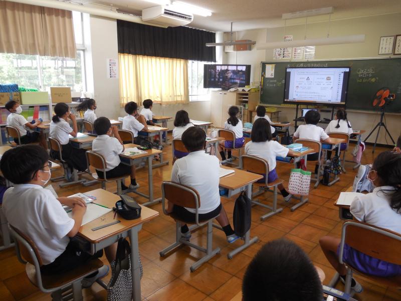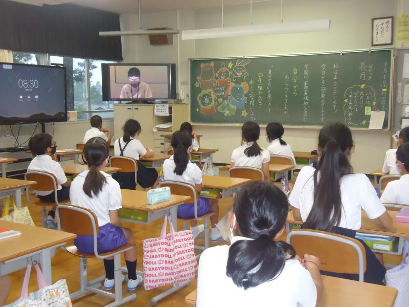 8月2日(火)全校オンライン朝の会を行いました。今年度は、1年生から6年生全校参加です。