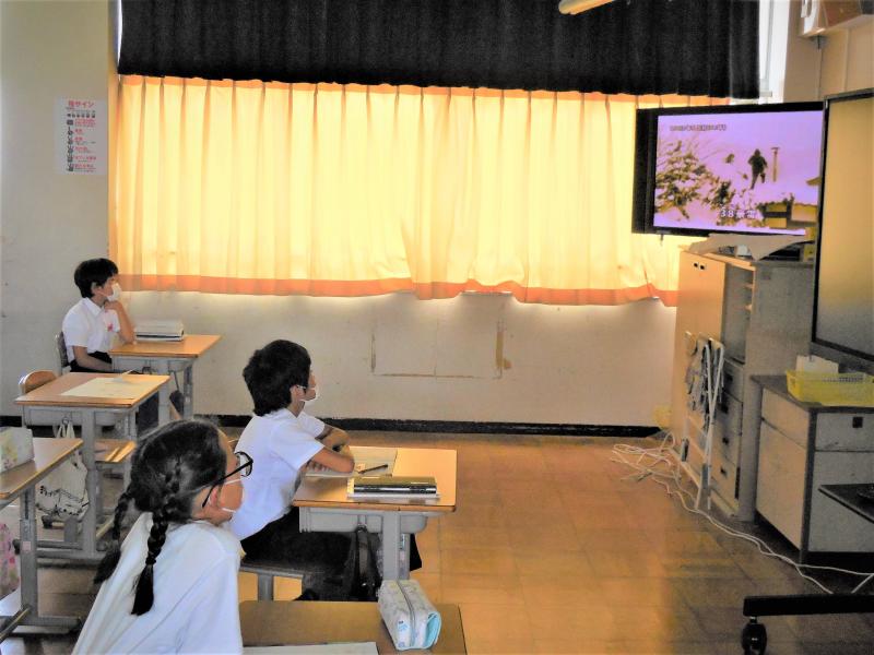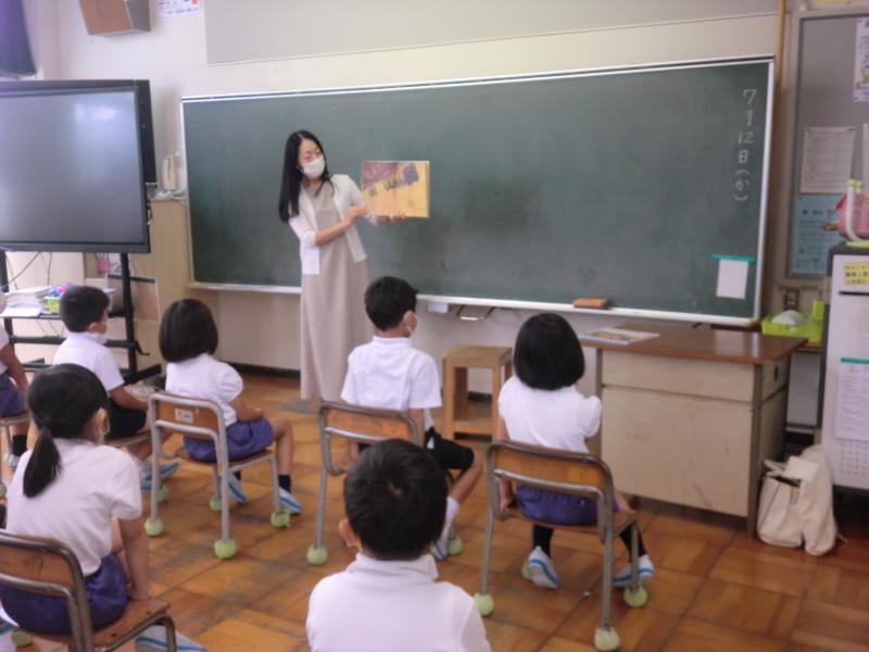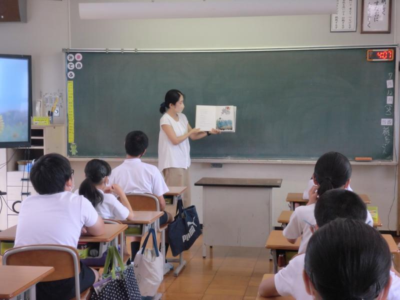 今回は、全学年に向けて「平和」をテーマに読み聞かせをしてくださいました。どの学年も、真剣に聞き入っていました。