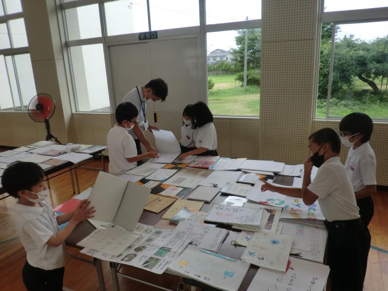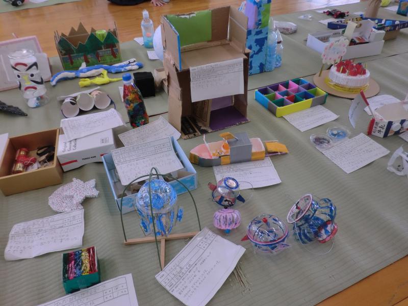 児童が学級ごとに作品展を見に来たり、多くの保護者の皆様にも学校へ足を運んでいただき作品を見ていただいたりしました。