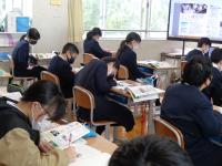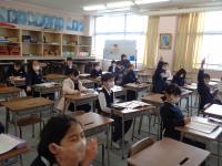 今日の2時間目の授業をのぞいてみました。電子黒板をつかって教科書や資料を提示し、今、何を考えるのか目的を共有できるように工夫している授業。子どもたちが意欲をもって考えられるように教材を工夫した授業。子どもたちの身の回りの素材をつかって考えることで前のめりになって取り組める授業。そして、先生と共に一生懸命学習する子どもたちの姿。先生方にも子どもたちにも「仲間と同じ教室で、友達の反応を感じたり意見を交わしたりしながら学び合える」そんな当たり前の授業がいかに幸せなことなのかが伝わっているような気がしました。