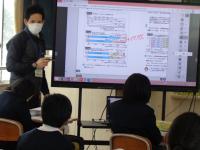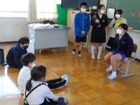 この学習は、外国語の授業の一環として行っており、子どもたちは、自己紹介も質問タイムも英語を使って、伝え合いました。伝えたいことをどのように英語で表現するのかが分からなくなったら、友だちがサポートする姿が見られるなど、助け合う光景も見られました。
