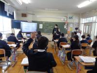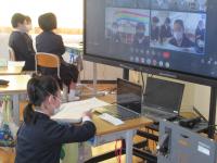 10日(木)に6年生は、オンラインで町内の小学校6年生と交流学習をしました。各校でグループを作り、グループごとでの交流となりました。グループごとに司会進行をする学校があり、その学校の児童による進行で、自己紹介をしたり、質問をしあったりしました。