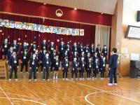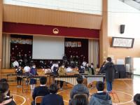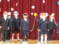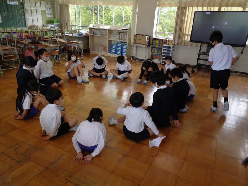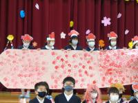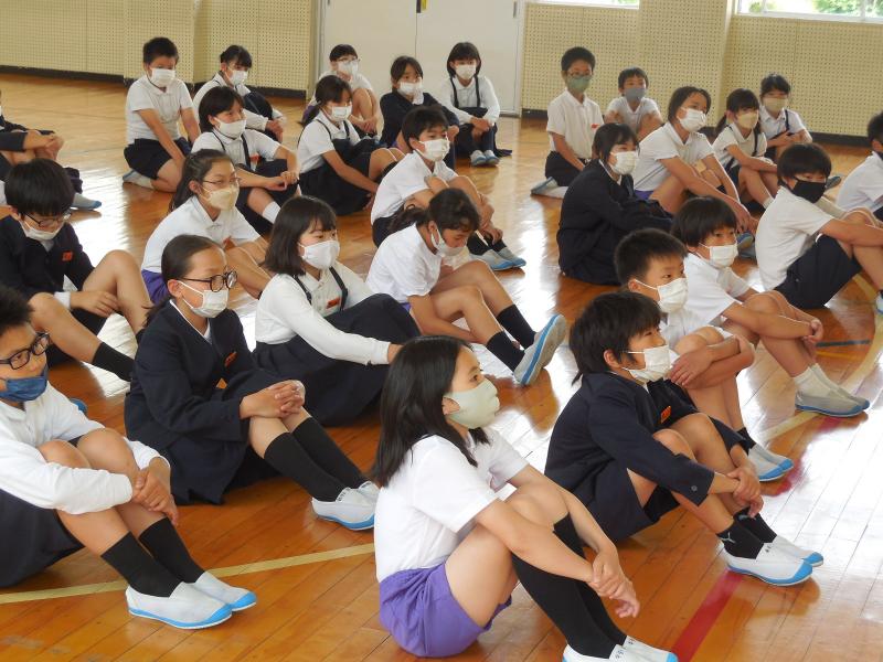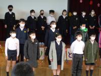 運営担当の5年生と主賓の6年生は体育館で、他の学年は教室でリモート参加をしました。自分たちの出番の時だけ、体育館へ足を運びます。これも、感染対策の一つです。
