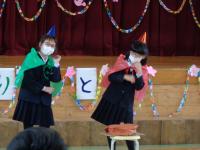 後半の部2番目は、3年生による劇「まほうつかいのことわざさがし」でした。国語科の学習を生かして、様々なことわざを取り入れた内容で、途中でことわざクイズが出てくるなど工夫が凝らされていました。クイズでは、会場にいる5・6年生も、リモートでつながっている学年の教室でも答えを考える姿が見られました。