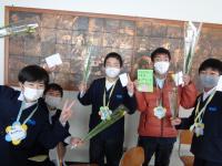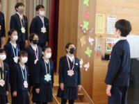 21日(月)には、1年生が、プレゼントの金メダルを6年生に渡しました。今までの学校での仕事ぶりが、金メダル級の6年生にぴったりのプレゼントです。今までお世話してきた低学年の子どもたちからの招待状や金メダル。どちらも、6年生にとっては素敵な思い出になりそうです。