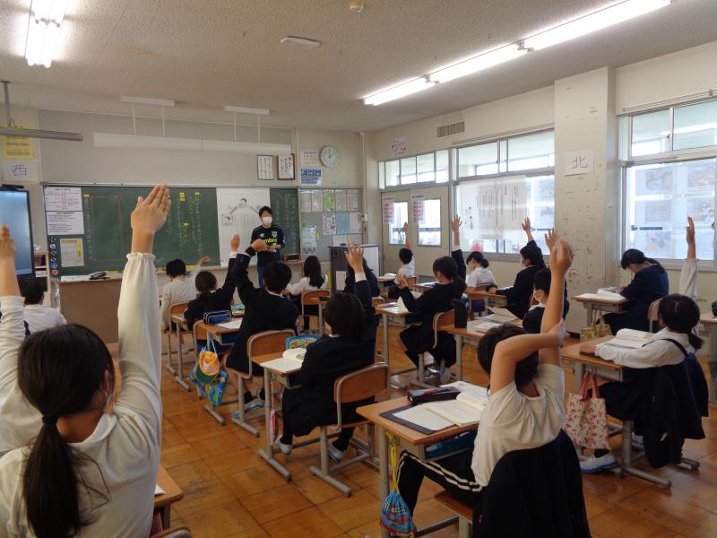 授業では、それぞれの学年や学級に応じためあて意識を持って学習に真剣に取り組んでいます。手もピンピンに挙げて学習に参加!