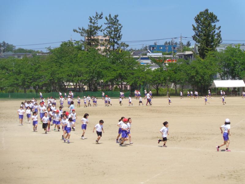 体力向上と、自分のめあてに向けて努力を積み重ねる心を育てることをめあてに、5月26日(木)のマラソン大会に向けて、長休みかけ足運動に取り組んでいます。