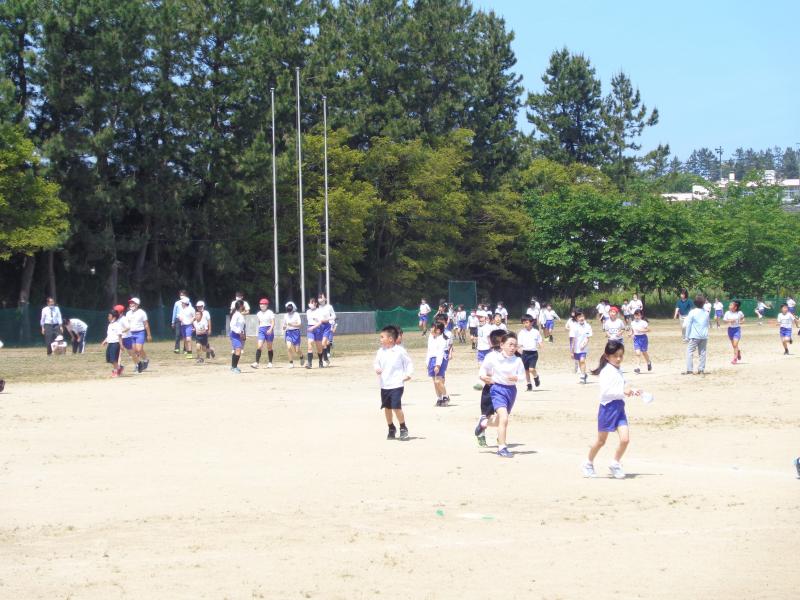 低学年940m、中学年1430m、高学年1880m。それぞれが自分の出せる力を振り絞って走りきりました。中にはデッドヒートの場面も・・・