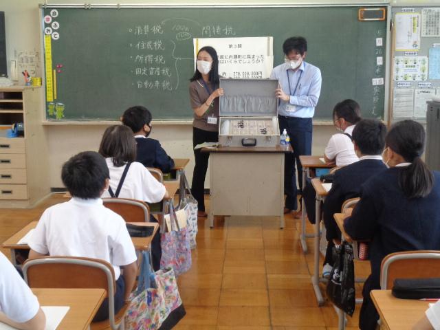 5月26日(木)の午後から、町役場の税務課の方々をお招きして、6年生の租税教室が行われました。