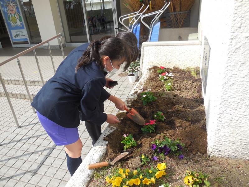 5年生が植えた花が一つ一つ違う美しさがあるように、向粟崎小学校の一人一人が、みんなちがってみんないい。一人一人が自分らしく、そして笑顔があふれますように・・・