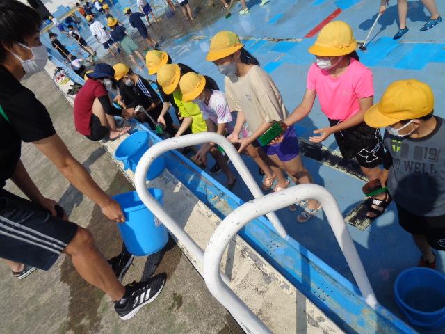 6月3日(金)に5・6年生でプールそうじを行いました。