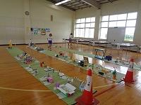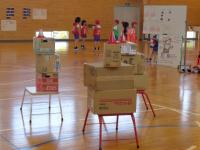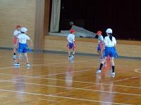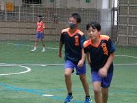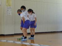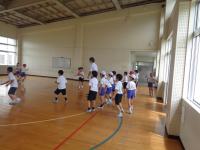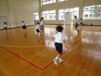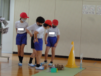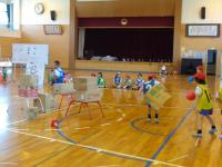 2年生は、体育の時間に強く投げる方法や、狙って当てる方法について学習した後、的当てゲームをしていました。工夫された陣地を守る人と攻撃する人に分かれて運動をしていました。攻撃する人は、的を狙いながら強く当てなくてはならず、今までの学習が大切になってきます。守備陣も攻撃陣も楽しそうに競技に没頭していました。