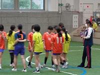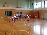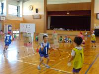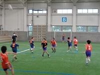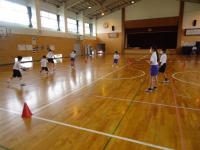 体育館でタグラグビーに取り組んでいます。「ラグビー楽しい」とお話してくれた女の子。楽しく運動している様子を見て、こちらもうきうきしてきました。