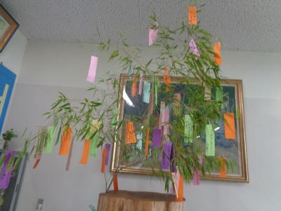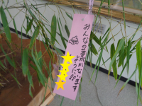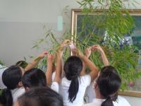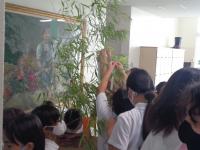 細井先生が用意してくれた竹に七夕の短冊を付けている子どもたちでした。