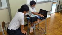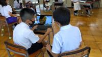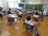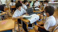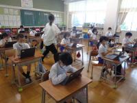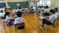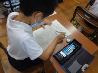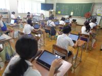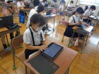 1学期の生活や学習を振り返るアンケートを全校一斉に行いました。子どもたちのアンケート結果を分析し、今後の指導に役立てることが目的です。例年は、紙のアンケート用紙を使い、あてはまるところに〇をつけていくのですが、今年はせっかく1人1台のタブレットがあるので、1年生は、はじめてのアンケートだったため、紙のアンケート用紙で取り組みましたが、2年生以上は、パソコンでアンケートを実施することにしました。問題を読みながら、あてはまる答えを軽く触る(タップする)だけなので、学年によってはあっという間にアンケートを終えることができたようです。今では、どの学年もタブレットを開いて起動するのが随分と手早くなってきました。