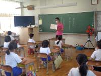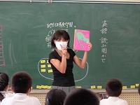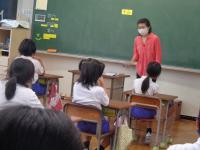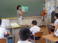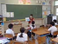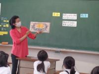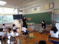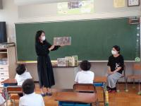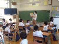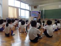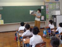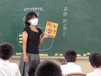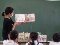 毎週月曜日は、英語のALTである荒木先生の来校日。月曜日の朝は、英語の読み聞かせをしていただいています。荒木先生の読み聞かせは、ほぼ英語だけ。ちょっと難しい言葉は、動作を付けて何度も繰り返し読むことで、子どもたちにも伝わるようです。