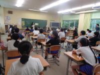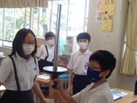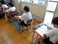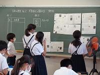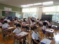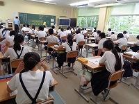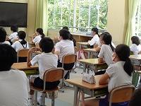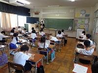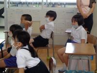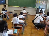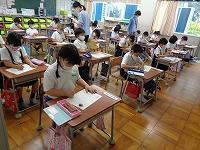 1日目の授業の様子をのぞいてみました。1日目から、先生の話を集中してしっかりと聞く姿や、真剣にプリントに取り組む姿が見られました。理科室では、夏休みに取り組んだ科学研究の発表会をしていました。発表が終わるとみんなの温かい拍手が教室に広がっていました。