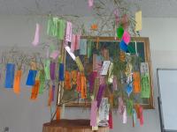 そして、今日は7月7日、七夕の日。一年に一度、織姫と彦星が出会う日です。給食は、七夕メニューとなっていました。玄関の七夕飾りは、子どもたちの願いを書いた短冊がたくさん飾られています。職員室から、「向っ子のみんなが、体も心も元気でいられますように」という願いを書いて笹にかざりました。