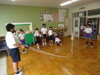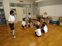ハンカチ落としをしているグループはハンカチを落とす子に偏りがないように配慮していました。「ぼくに落として~!」と言いながら、楽しく遊ぶ姿が見られました。