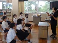 6年生の外国語では「Let’s go to Italy」という単元で、いろいろな国の見所や食べ物などを調べました。旅行雑誌やクロームブックを使ったWeb検索で、外国のいろいろな魅力を知ることが出来たようです。せっかく調べたその国の良さを英語を使って5年生にプレゼンする時間を持ちました。自分たちの教室の他に、学校中の特別教室などに分かれて発表するなど、密にならないように気を付けて発表していました。自分のおすすめの国に行くと、何を見ることが出来るのか、何が買えるのか、その国で楽しめる物は何かなどを英語で発表しました。身振り手振りをつかって分かりやすく発表する6年生もいました。5年生も真剣に6年生の発表を聞く姿が見られました。