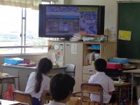 教室では、電子黒板を使って学習中。自転車に乗るときに、してはいけないことを学んでいました。スマホやゲームをしながら、傘さし運転、二人乗りなどなどの乗り方がどうしダメなのか学んでいました。