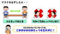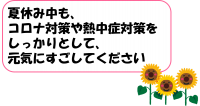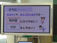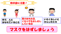 保健室からは、夏休み中コロナや熱中症に気を付けるための生活の工夫についてお話がありました。お話の内容については、指導に使ったスライドの一部を画像で紹介しますので、参考にしてください。