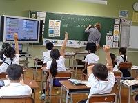 理科の授業です。環境についての学習のようです。先生の問いかけに対して、子どもが次々に反応してきます。
