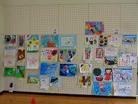 本校のプレイルームに所狭しと掲示された絵画や書写作品。そして、ずらりとならんだ工作。丹念に調べた研究物などが展示されています。