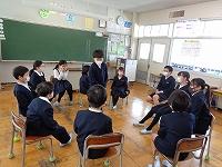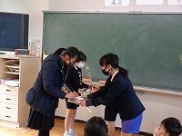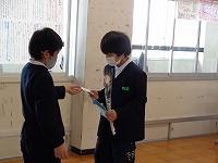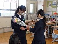 5時間目は、5年生が司会進行をつとめる「はまなすタイム」を行いました。今日のはまなすタイムは6年生はお客様。今までの苦労をねぎらい、感謝の気持ちを伝える時間でした。みんなで、フルーツバスケットや、イラストしりとり、イエスノーゲーム、風船バレーなどを楽しんでいる姿は微笑ましかったです。会の最後には、1年~5年生から、一人一言ずつ感謝の言葉を伝えた後、プレゼントとしてみんなからのメッセージカードを渡しました。石川県農業政策課からのご厚意で卒業生にエアリーフローラ―が届いたため、花束も一緒にプレゼント。「豪華なプレゼント!」「めっちゃいいにおい」「こんなカードいつ作ってたの?」と素直な感想を思わずつぶやいていた6年生の姿が見られました。