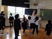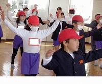 プレイルームでは3年生が体育の授業中でした。表現運動の学習です。軽やかなリズムにのって、体を動かしています。テレビからよく流れてくる曲なので、子どもたちも曲をよく知っているようで、うきうきした表情を浮かべながら踊っています。授業が終わった後も、休み時間に練習をする子もいたそうです。仕上がりが楽しみです。