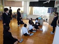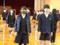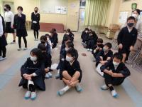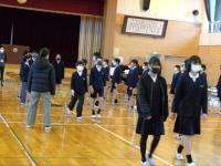 1時間目の体育館。6年生が、緊張した面持ちで卒業式の退場練習をしていました。早めのテンポであっという間に退場してしまう6年生。担任から、もっと堂々とゆっくりと退場するようにと何度も繰り返し指導が行われていました。