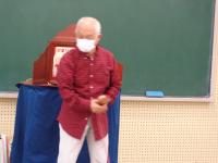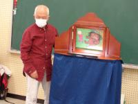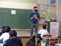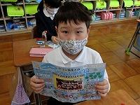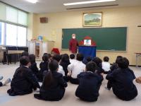 「のまりん」こと野間成之さんが学校に来てくださり、紙芝居を読んでくださいました。拍子木を使って、楽しい歌を歌って子どもたちの心をなごませたあと、紙芝居を次々と読んでくださいました。声色を登場人物に合わせて七変化させたり、時には身振り手振りで役になり切って読む姿に、子どもたちも引き込まれていきます。あるお話では、少年が、いじわるなことをする主人のお宿に泊まる時、2回目に泊まる場面では、何か悪いことをされると感じたのか、紙芝居を見ている子供たちが「だめだめ」と思わず声に出して、主人公の少年に教えてあげようとする姿も見られました。そのくらい場面に入り込んでいたのですね。時には、笑ったり、時には、身を乗り出して話を聞いたり、ちょっぴりこわい場面では、ドキドキしたりしながらあっという間の1時間を過ごしていました。