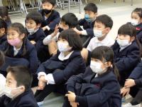 5年生が、企画・運営し開催されました。スローガン決め、各種提案、会の準備、リハーサル、当日の運営、片付けまで一生懸命がんばりました。体育館には、3・4年生の作成した壁飾りと、5年生の作成したステージ飾りがありがとう会に花をそえていました。感染予防のため、常に扉を開けた状態で開催しましたが、少しでも温かい環境で過ごしてもらいたいと、ジェットヒーターを2台設置しました。各学年の出し物も、6年生に感謝の気持ちを伝えようと工夫されていました。いつもとは違って、全員で出し物を鑑賞することはできませんが、6年生にはみんなからの思いが伝わったと思います。