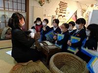 社会科の学習の一環で、内灘町の砂と風の館を3年生が訪問しました。砂と風の館では、昔のくらしぶりが子どもたちにもよくわかるように実物の部屋の様子や昔の道具などが展示してあります。学芸員の方から、くわしいお話を聞き、昔の人々の生活様式について学ぶことが出来ました。電気がない時代の生活様式は、子どもたちには信じられないようで、ろうそくの明かりを活用した行燈や、藁で作った外套などを見せていただき驚きの声を出していました。また、漁業が生活の中心だった町のくらしを聞き、魚の行商をする「いただきさん」のお話も子どもたちにとっては想像を絶するお話だったようです。