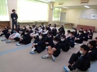 石川県では感染者数の増加が著しく、県独自の緊急事態宣言も発出されました。本校では、本日の朝学習の時間帯に、テレビ放送を使って保健安全指導を行いました。