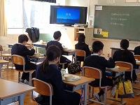 外国語の時間に、6年生は内灘町内の他校の6年生とweb会議を行いました。6年生は、あと数週間で内灘中学校へ進学します。そこで、スムーズに中学校生活がスタートできることや、身に付けた英語の力を試してみることを目的として、自分が中学校で入りたいと思っている部活動別にグループを作り、英語を使って自己紹介を聞いたり、伝えたりしました。3時間目に大根布小学校の6年生とやりとりをする時は、声も聞き取りやすかったのですが、4時間目には、鶴ケ丘小学校の6年生も加わり、合計3校でのやりとりの場では、声が交じり合って、発表する友達のスピーチが聞き取りにくい場面もありました。まだまだ先生も子どもたちもweb会議に慣れていないので、話すタイミングがつかめないことやweb会議のルールが手探り状態であることも要因ですが、何事も経験が大切です。6年生にとって、今日の時間で、お友達のことが少しわかり、春に向けて楽しみが増えればうれしいです。