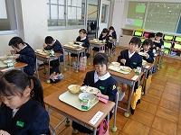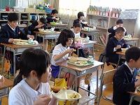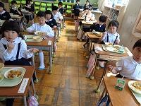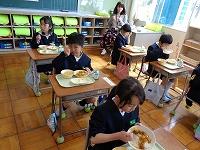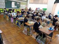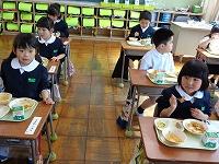 初めての給食はおいしかったかなと聞くと、一斉に「おいしー。」「最強や。」「まだまだ食べられるくらいやわ。」と感想を教えてくれました。