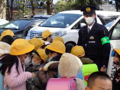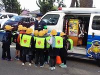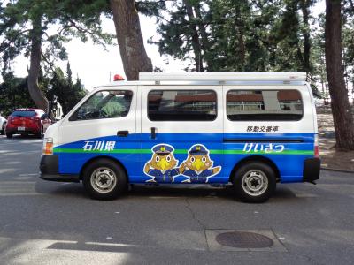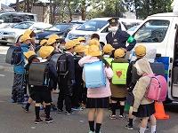 木曜日の下校時刻に、石川県警のマスコット「いぬわしくん」が書かれた車が学校前に到着。石川県に1台しかない「移動交番車」です。石川県警のおまわりさんも2人来てくださいました。お1人は移動交番車の説明をしてくださる方で、もう1人の方はアカシア公民館前で安全指導をしてくださる方です。初めて見る車に、たくさんの子どもたちが集まり、おまわりさんに質問したり、おまわりさんからの説明を聞いたりしていました。なかなか目にすることのない車なので、貴重な出会いとなりました。