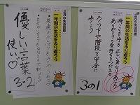 いよいよあさっては卒業証書授与式。6年生にとって新しい旅立ちの日がやってきます。在校生にとっても、新しいスタートが目の前にせまってきました。学校では、1年の締めくくりとして、これまでの自分たちの学校生活を振り返り、次学年に向けて、伸ばしたいところや改善しておきたいところを学級会で話し合いました。その結果を、3月の生活目標として設定し、各学級で取り組んでいます。3月の学校だよりにも「今こそ気を引き締めて」と書かれていましたが、いい終わり方ができるよう毎日毎日子供たちも先生たちも頑張っています。