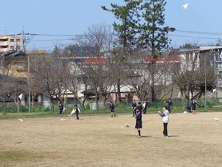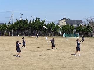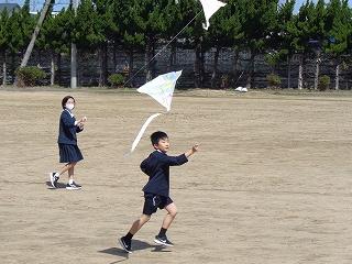 5年生が制作した凧ですが、世界の凧の祭典の中止に伴い、揚げる場がなくなってしまいました。せっかく思いを込めて作った凧を揚げないなんてもったいない!ということで、晴れて風の条件も良い本日、5年生みんなで凧揚げをしました。最初は苦戦していたみんなでしたが、徐々にコツを掴み、ぐんぐん高く揚げていました。思いっきり走って揚げようとしたり、風を感じながら紐を緩めたりするなど、思い思いの方法で工夫しながら楽しんでいました。晴れ渡る空と、みんなの輝く笑顔が爽やかな風を運んでくれていました。
