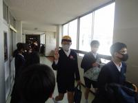 新型コロナウイルスで、いろいろと教育活動は制限を受けている中ですが、避難訓練を計画通り実施しました。天災や事故はいつ起こるかわかりません。そんな時に、自分の命を守るためのどんな行動をとることが大切なのかを学ぶ大切な訓練です。特に、1年生は、向粟崎小学校の避難経路を学ぶいい機会になります。今回は1階が火災現場という想定で、避難しました。防火シャッターが下りている中で、非常用扉を使っての避難行動でした。