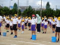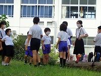 木曜日のお昼の掃除は、運動場で行いました。縦割り班で、運動場の石拾いと草むしりをするためです。長い間、外での体育をしてこなかったため、運動場は草だらけでした。全校児童で草をむしるとわずか20分ですが、草で満タンになったバケツがいくつもできました。