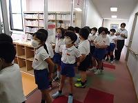 9月1日には3年2組が図書館へ行きましたが、次は1組の番。9月10日にスクールバスに乗って町の図書館へ図書館利用の学習に行ってきました。