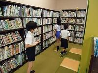 お家の人と一緒に行ったことがある人、今まで図書館に行ったことがなかった人など色々でしたが、クラスの友だちと一緒に行く図書館はなんだかいつもよりドキドキしてしまいます。ほかの利用者の方々の迷惑にならないように、できるだけ静かに歩き、図書館の色々な場所を見て回りました。1組のみんなも、お気に入りの本を見つけて自分のカードで借りたり、その場で読んだりして図書館を十分に楽しみました。