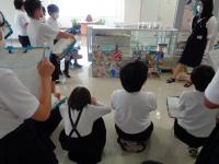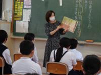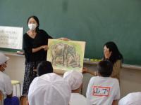 登場人物3人の声を見事に使い分け、時には子どもたちに呼びかけて、一緒にせりふを読んで場を盛り上げてくださいました。子どもたちも集中してお話の世界に浸っていました。