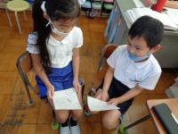 コロナの関係で、クラスごとの開催になったため、2組さんのお話し会の間に1組さんは早速お礼のお手紙を書いてくれました。最後に、アナウンサーの方に直接手渡しすることができて、心の交流も見られました。