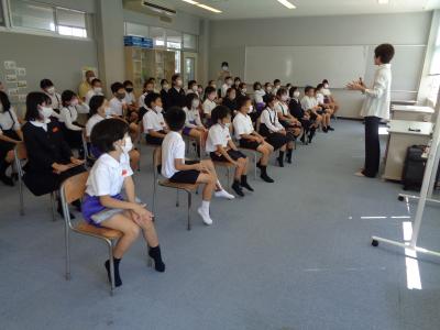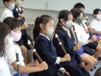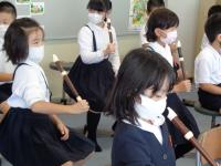 正しい演奏方法を身に付けるために、講師の先生をお招きしてリコーダー講習会が行われました。リコーダーの正しい持ち方、息の使い方、タンギングのやり方、指使いなどについて丁寧に教えてくださいました。