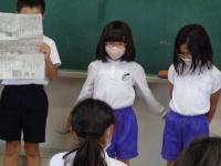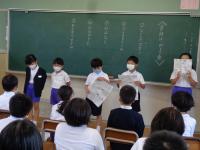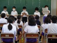 2年生が国語の授業で学習したことを生かして「音読発表会」を行いました。3年生を招待して、自分たちが選んだお話を披露しました。作品は、アーノルド・ローベルの書いたお話の中から選びました。「なくしたボタン」「アイスクリーム」「おはなし」「はるがきた」の4作品を3年生は集中して聞いていました。2年生は、グループ毎にセリフの分担や動作の工夫をし、練習の成果を見せてくれました。2年生にとっては、先日のMROのアナウンサーの読み聞かせもよい刺激になったかもしれませんね。音読発表が終わった後は、「かんそうタイム」。3年生が、たくさん手を挙げてくれました。2年生の音読も素晴らしく、3年生の聞く態度、感想を伝えようという気持ちも立派でした。